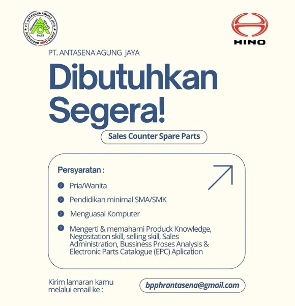 Lowongan Kerja Sales Counter Spare Parts HINO Balikpapan